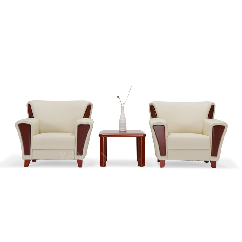 接待沙發一般有油漆部分,所以茶幾一般是選用實木油漆茶幾較和諧好看。油漆顏色和沙發的油漆顏色統一,紅胡桃與黑胡桃顏色較常見,做出來的案例也非常漂亮高端。