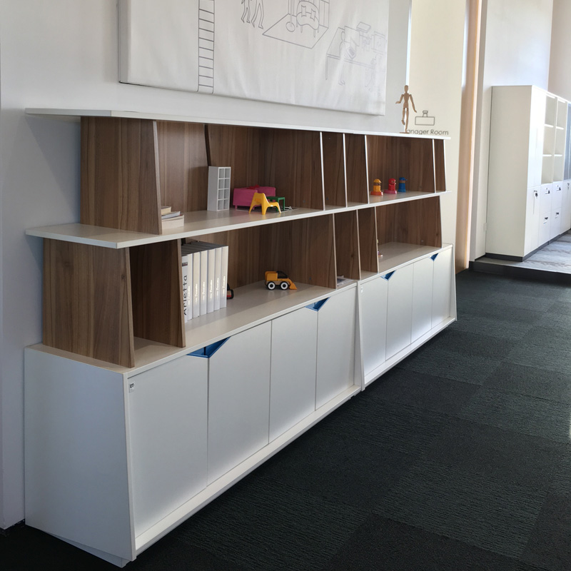 安全環保;柜子顏色的紋理細膩清晰,光澤飽和,手感舒適。不糾結在瑣碎,使用極簡的設計理念闡釋了空間的美學,去繁就簡去除多余的裝飾元素,用最直白的設計語言營造出新辦公空間的舒適氛圍。
